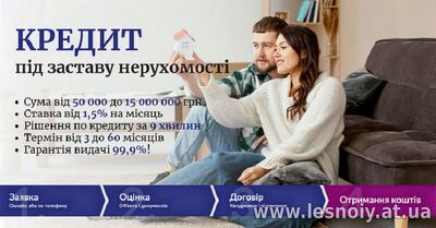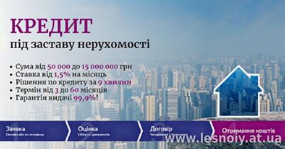 Кредит під нерухомість і автомобіль до 15 млн. грн. Кредит під заставу квартири під 1,5% на місяць. Кредитування без довідки про доходи під заставу нерухомості. Кредит під заставу будинку без довідки про доходи