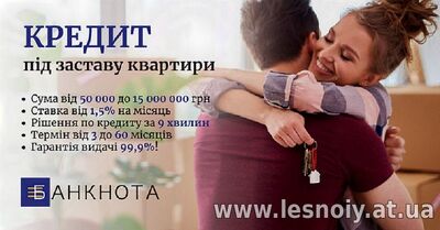 Фінансова компанія "Banknota" пропонує кредитування від 50 000 до 15 000 000 гривень всього під 1,5% на місяць під заставу будь-якої нерухомості!